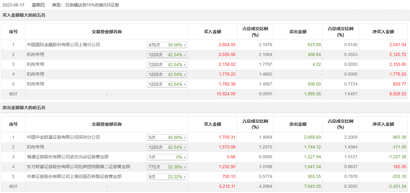 昊志机电8月17日涨停,龙虎榜数据显示,上榜营业部席位全天成交2.58亿元,占当日总成交金额比例为21.26%。其中,买入金额为1.61亿元,卖出金额为9638.91万元,合计净买入6497.29万元。