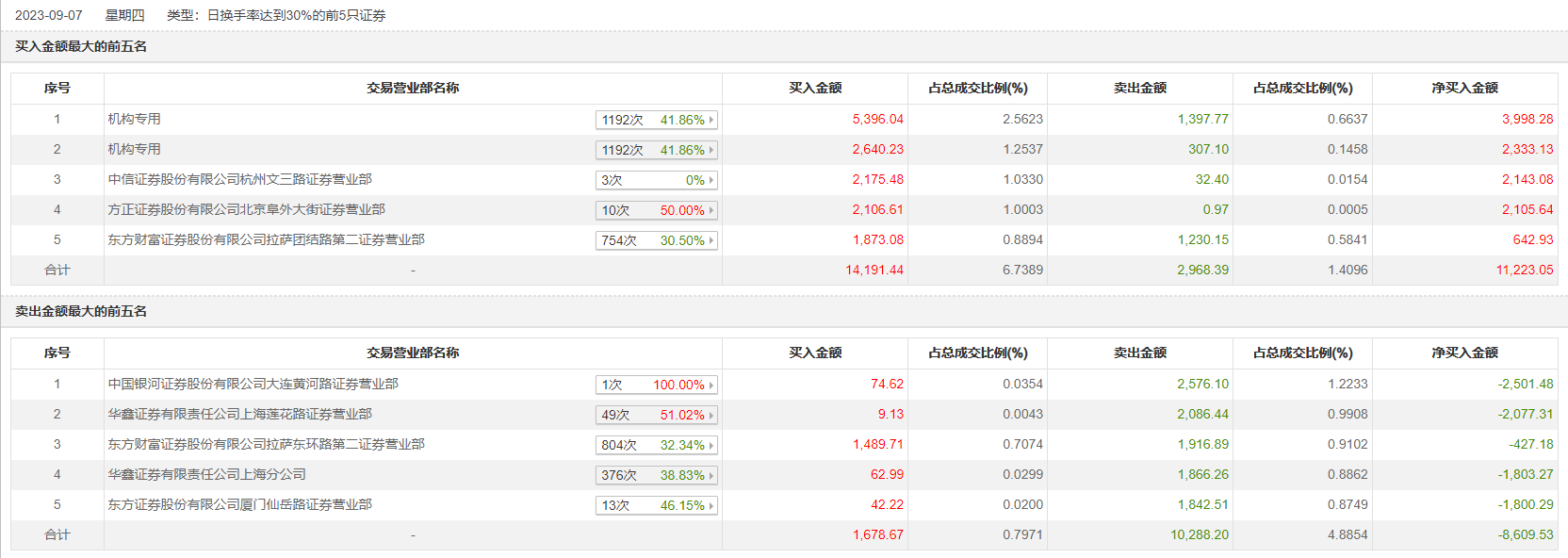 今日涨9.16%,成交额21.06亿元,换手率61.73%,盘后龙虎榜数据显示,二机构净买入6331.40万元。