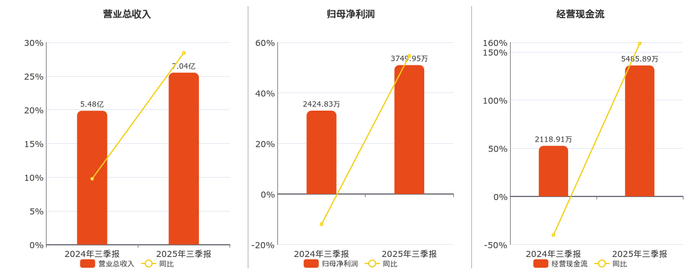 公司营业总收入为7.04亿元,在已披露的同业公司中排名第31。归母净利润为3749.95万元,在已披露的同业公司中排名第30。经营活动现金净流入为5485.89万元,在已披露的同业公司中排名第23。