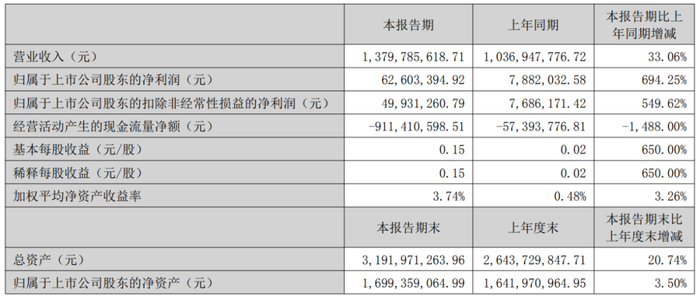 先进数通 2025 年上半年营收 13.8 亿,同比增长 33.06%;净利润 6260 万,同比增长 694.25%。