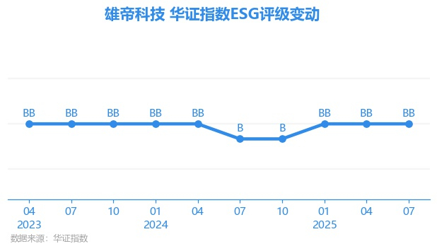 【ESG动态】雄帝科技(300546.SZ)获华证指数ESG最新评级BB,行业排名第227