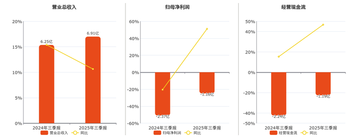 公司营业总收入为6.91亿元。归母净利润为-1.16亿元,在已披露的同业公司中排名第68。经营活动现金净流入为-1.19亿元,在已披露的同业公司中排名第64。