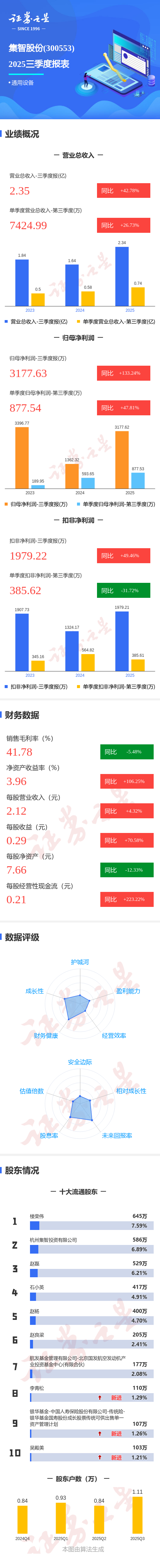 图解集智股份三季报:第三季度单季净利润同比增长47.82%