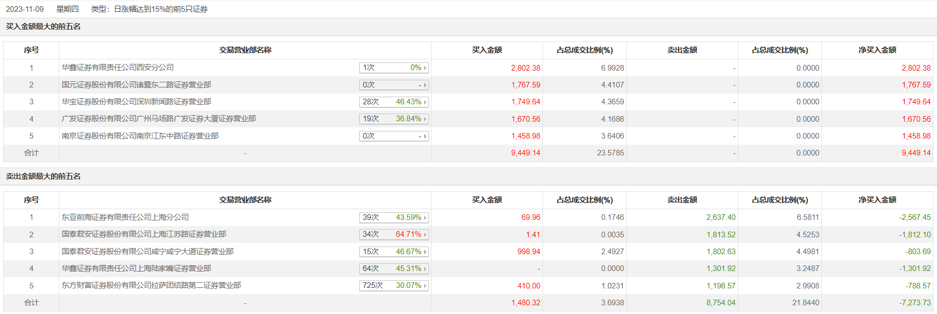 三超新材11月9日涨停,龙虎榜数据显示,上榜营业部席位全天成交1.97亿元,占当日总成交金额比例为49.12%。其中,买入金额为1.09亿元,卖出金额为8754.04万元,合计净买入2175.42万元。