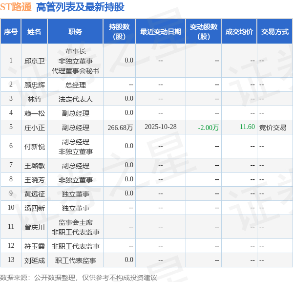 ST路通近半年内的董监高及核心技术人员增减持详情如下:
