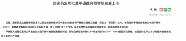 5月31日,贝达药业向信风(ID:TradeWind01)确认,贝福替尼已获批上市。