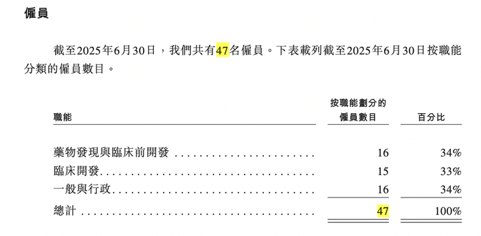 截至2025年6月30日,公司共有47名雇员。