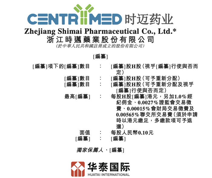 瑞财经 吴文婷11月12日,浙江时迈药业股份有限公司(以下简称“时迈药业”)在港交所递交招股书,独家保荐人为华泰国际。