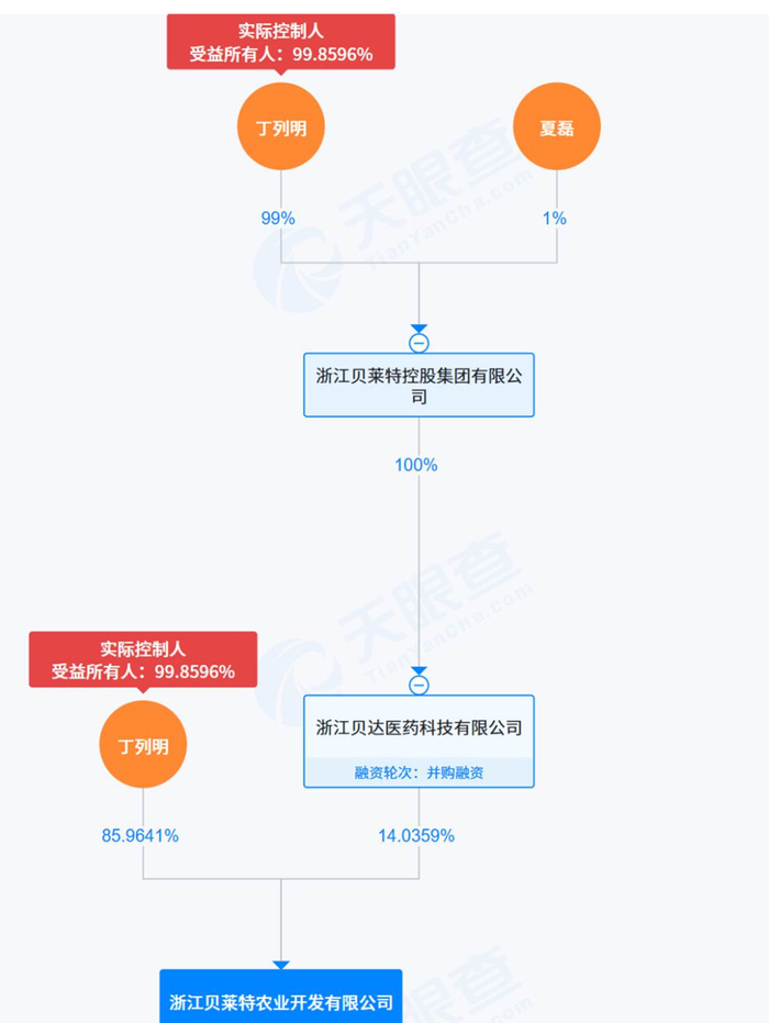 贝莱特农业、贝莱特控股的所有股权几乎全部由丁列明持有。