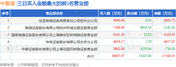 11月17日中富通(300560)龙虎榜数据:游资上海超短帮上榜