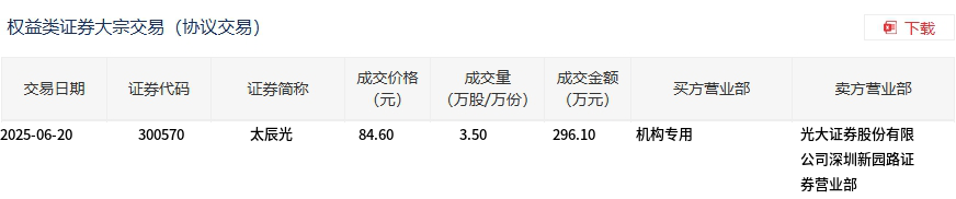 太辰光今日大宗交易折价成交3.5万股,成交额296.1万元