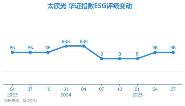 日前,华证指数公布了新一期(2025年7月31日)的ESG评级结果,太辰光(300570.SZ)获得BB评级(华证指数评级为C起至AAA九档,C为最低档,AAA为其最高一级评级/AA为其第二档),上一期(2025年4月30日)ESG评级为BB。本期ESG评级在529家电子设备、仪器和元件行业A股上市公司中排名第225(上一期排名第227)。