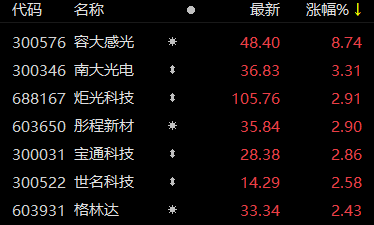 上证报中国证券网讯 5月31日午后,光刻胶板块震荡走高。14时25分,容大感光涨超8%,南大光电、炬光科技、彤程新材等跟涨。