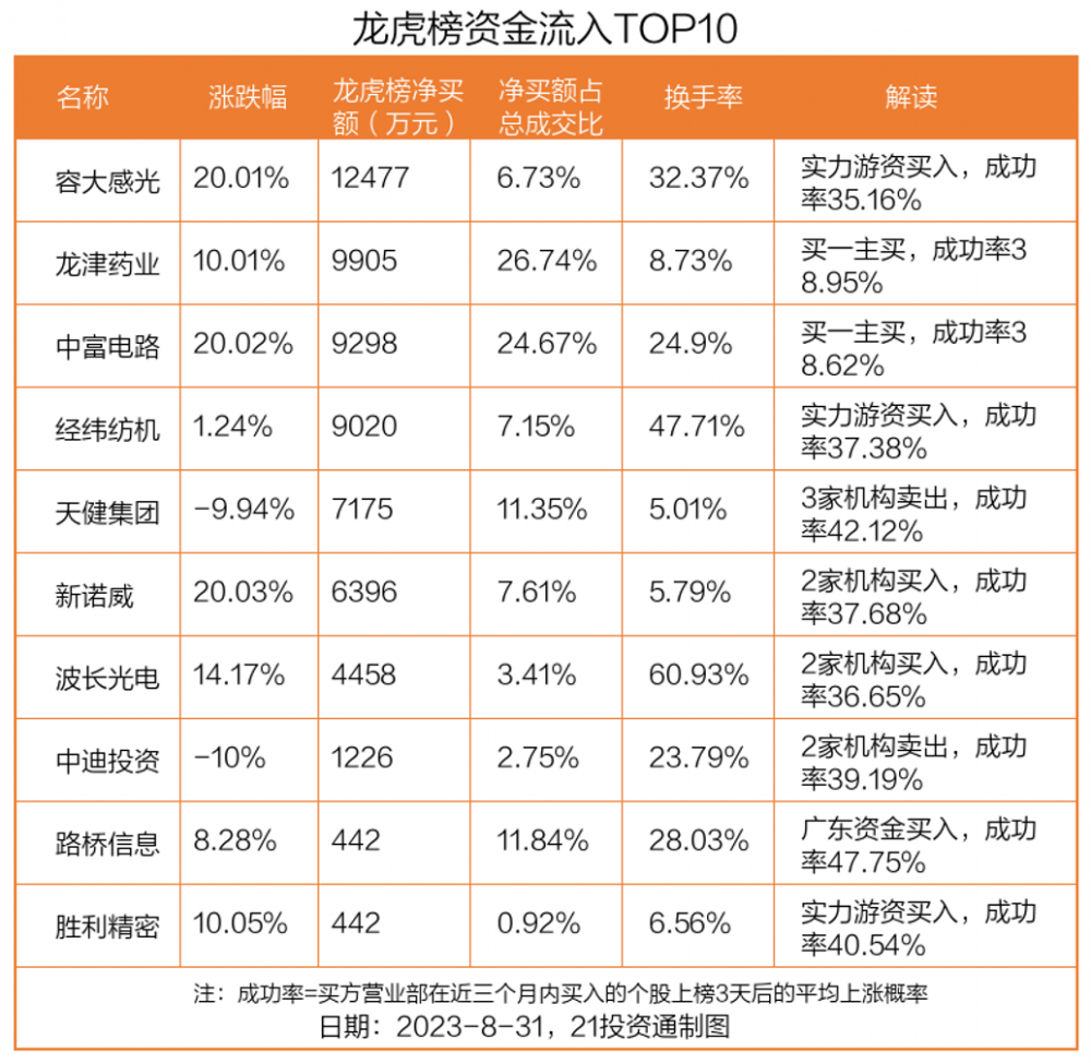 龙虎榜丨容大感光20CM涨停,获1.25亿资金抢筹(名单)