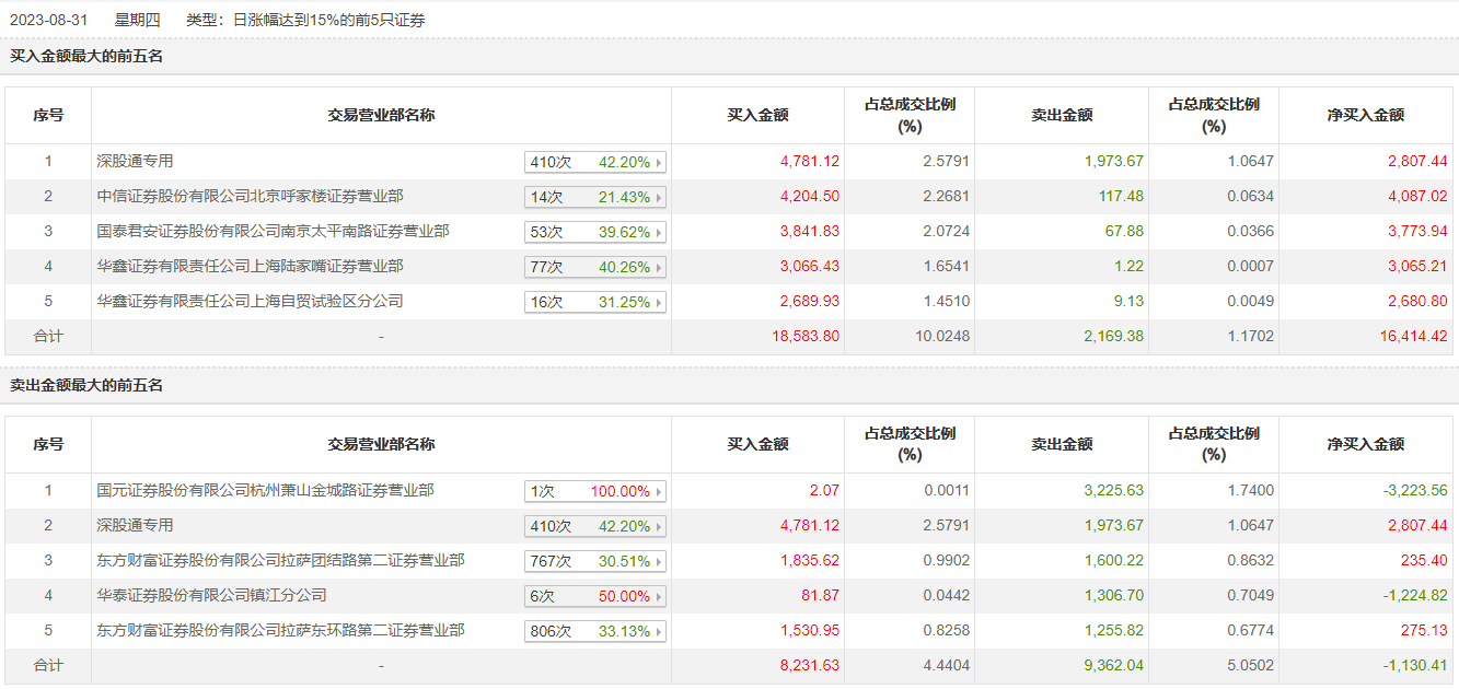 容大感光8月31日涨停,龙虎榜数据显示,上榜营业部席位全天成交3.16亿元,占当日总成交金额比例为17.04%。其中,买入金额为2.2亿元,卖出金额为9557.75万元,合计净买入1.25亿元。