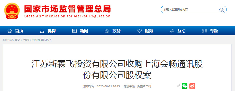 江苏新霖飞投资有限公司收购上海会畅通讯股份有限公司股权案