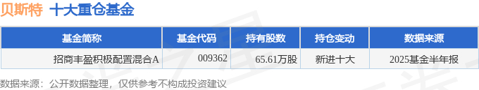持有贝斯特最多的基金为招商丰盈积极配置混合A,目前规模为6.87亿元,最新净值0.7167(10月22日),较上一交易日下跌0.39%,近一年上涨22.6%。该基金现任基金经理为郭锐 文仲阳。
