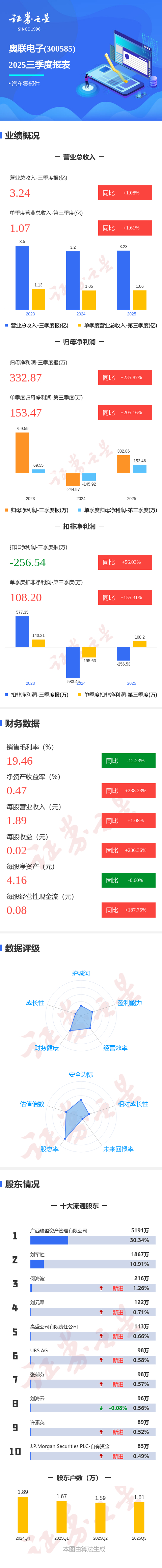 图解奥联电子三季报:第三季度单季净利润同比增长205.17%