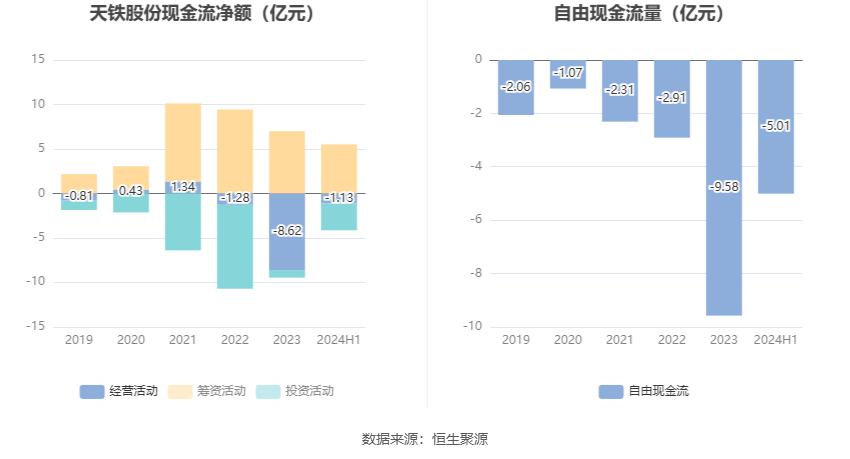 进一步统计发现,2024年上半年公司自由现金流为-5.00亿元,上年同期为-3.14亿元。