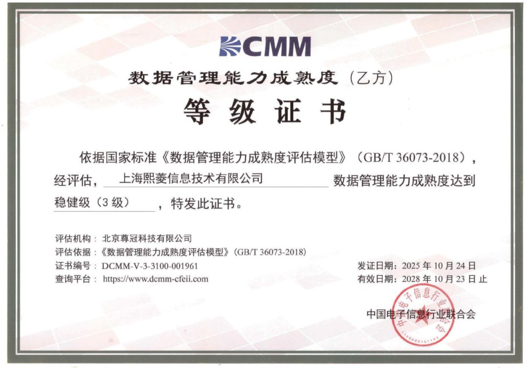 资质能力┃熙菱信息荣获“数据管理能力成熟度稳健级(3 级)”认证