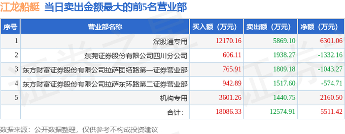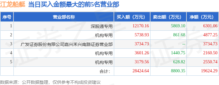 1月5日江龙船艇(300589)龙虎榜数据:机构净买入9588.5万元,北向资金净买入6301.06万元