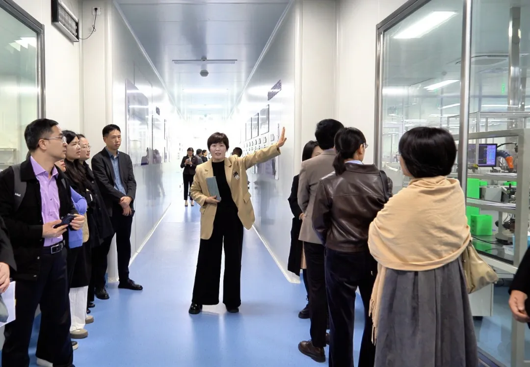 在副总经理付志英与研发工程师柳翠英的陪同下,专家们深入硬镜智能生产车间,零距离观摩了镜片从纽扣原料到智能化生产成镜片的全过程。严谨的工艺流程、先进的制造设备与严格的质量管控体系,让专家们对产品的“可靠”品质有了更直观、更深刻的信任。