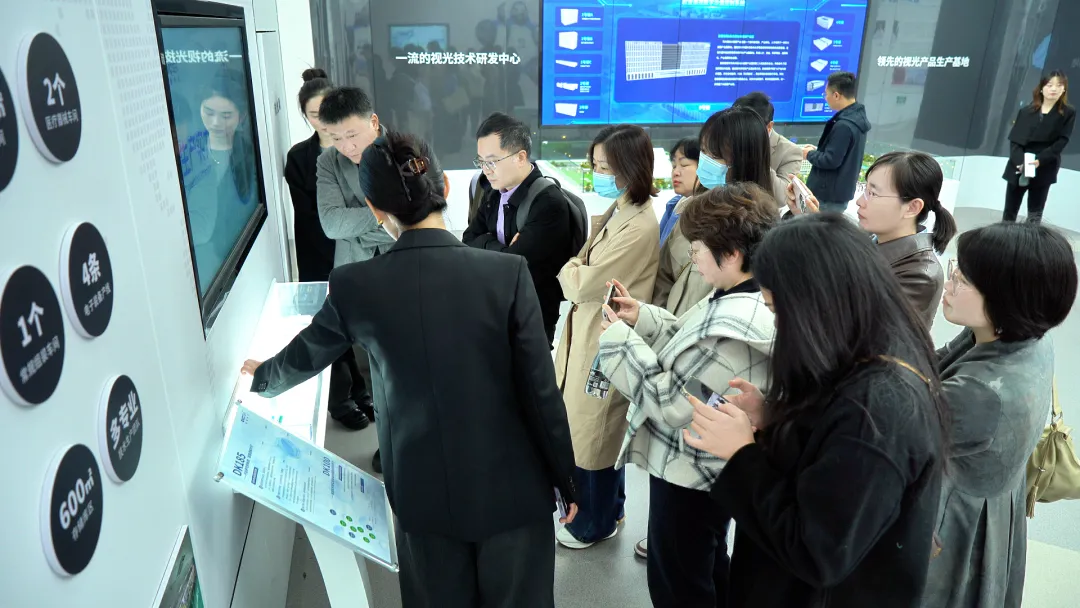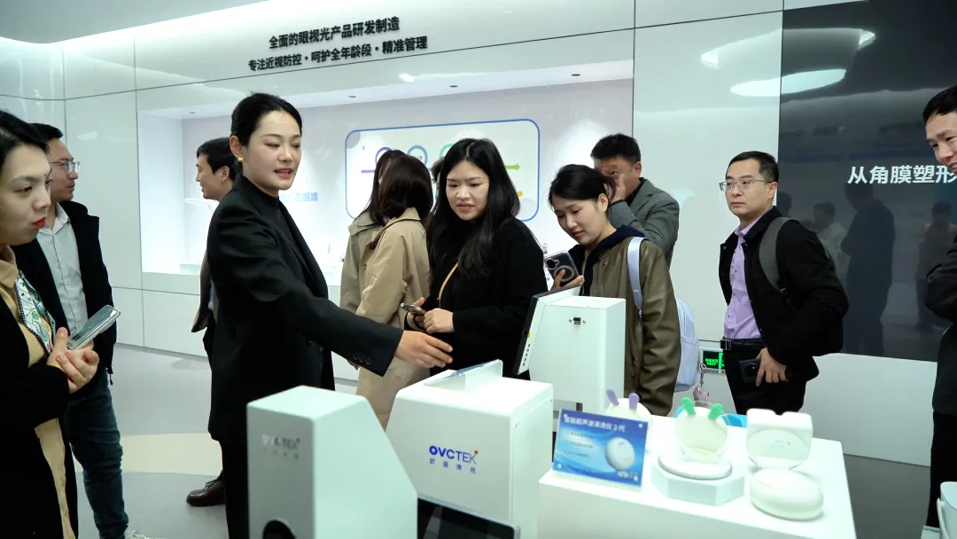随后,在欧普康视产品总监程真的引导下,大家步入企业展厅,品阅了欧普康视的发展历程与企业文化,深度感受到了欧普康视全生命周期的眼健康产品与服务体系。