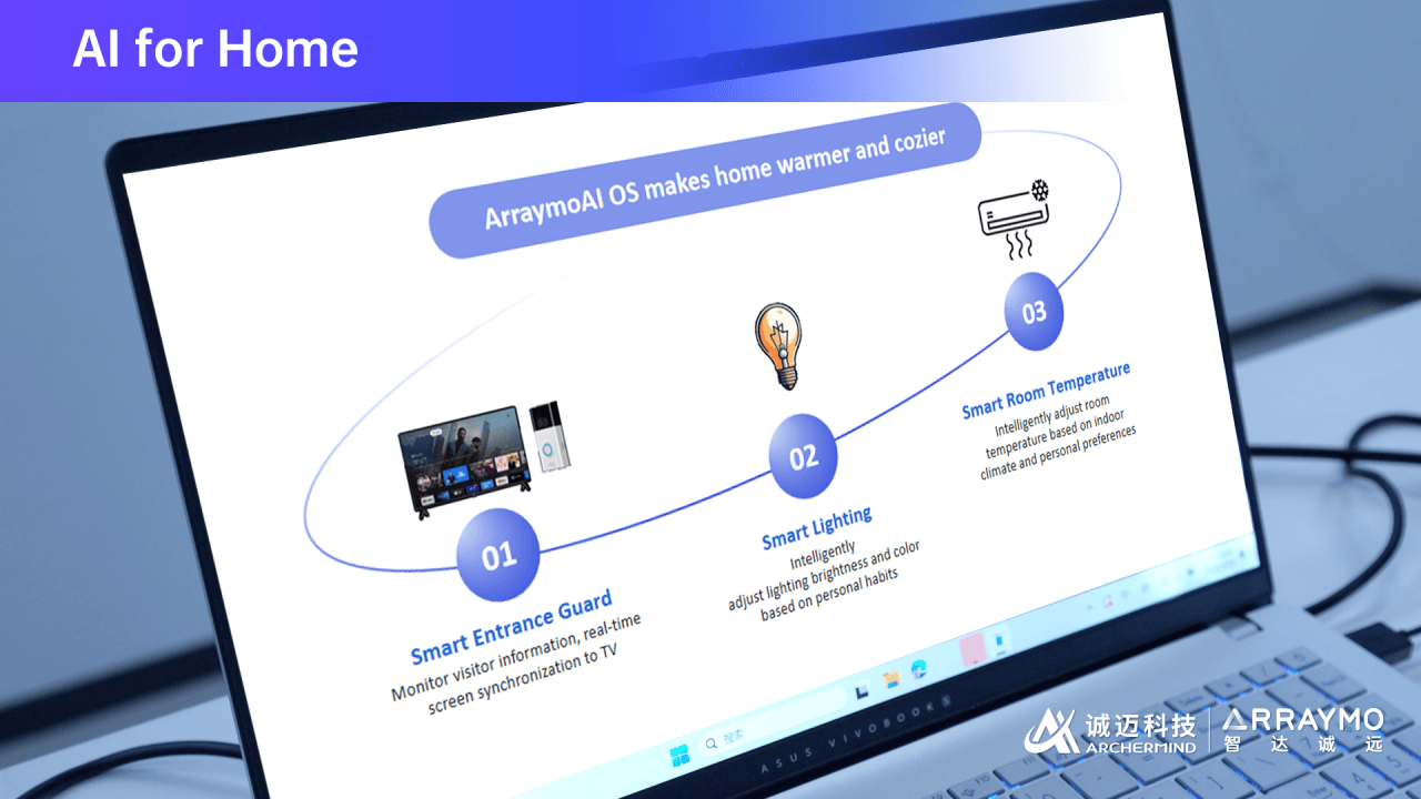 端侧AI是本届CES最重要的议题之一,未来的智能设备将更依赖于端侧AI技术,从而在本地完成复杂的推理和决策。智达诚远本次展出的ArraymoAIOS是一个集成AI模型、框架、SDK及工具的端侧AI操作系统,能够大幅降低厂商在端侧AI领域的开发门槛与量产难度,从而加速AI在设备端的部署和应用,助力客户打造多模态交互、个性化、多样化的智能应用。