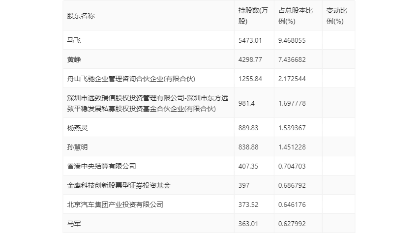 值得注意的是,根据年报数据,飞荣达16.12%股份处于质押状态。其中,第一大股东马飞质押9320.00万股公司股份,占其全部持股的39.89%。