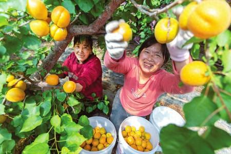 4月11日,果农正在夏县胡张乡西下冯村帮助分装采收的“金太阳”大黄杏。目前胡张乡大棚杏树的种植面积达2000余亩,种植生产的大黄杏销往全国各地,已成为当地群众增收致富的主导产业和拳头产品。