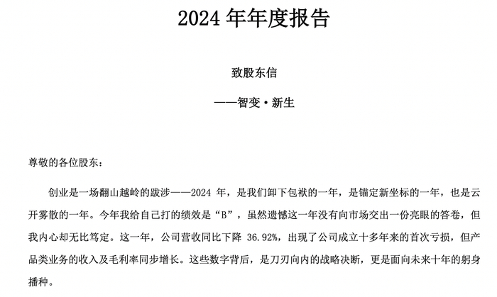 而在2024年年报中,吴丰礼表示,“创业是一场翻山越岭的跋涉——2024年,是我们卸下包袱的一年,是锚定新坐标的一年,也是云 开雾散的一年。”