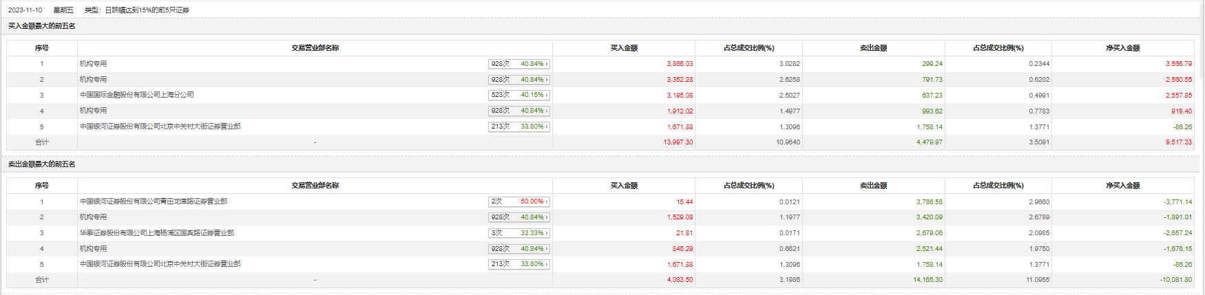 11月10日,思特奇今日跌15.29%,全天换手率达31.44%,振幅达12.89%。龙虎榜数据显示,营业部席位合计净卖出478.21万元。其中,机构买入1.15亿元,卖出8026.12万元,合计净买入3478.58万元。此外,中国银河证券青田龙津路证券营业部、华泰证券上海杨浦区国宾路证券营业部分别卖出3786.58万元、2679.06万元;中国国际金融上海分公司、中国银河证券北京中关村大街证券营业部分别买入3195.08万元、1671.88万元。