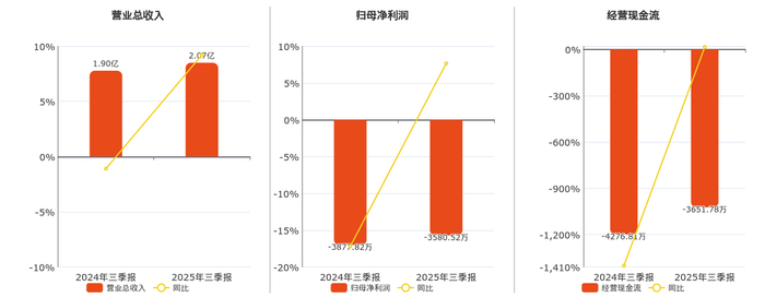 公司营业总收入为2.07亿元,在已披露的同业公司中排名第84。归母净利润为-3580.52万元,在已披露的同业公司中排名第82。经营活动现金净流入为-3651.78万元,在已披露的同业公司中排名第55。