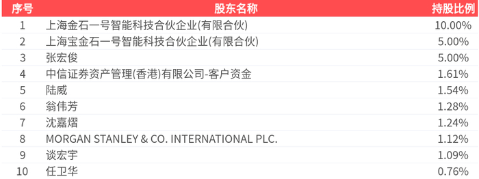 公司股东户数为1.50万户,前十大股东持股数量为3439.37万股,占总股本比例为28.63%,前十大股东持股情况如下: