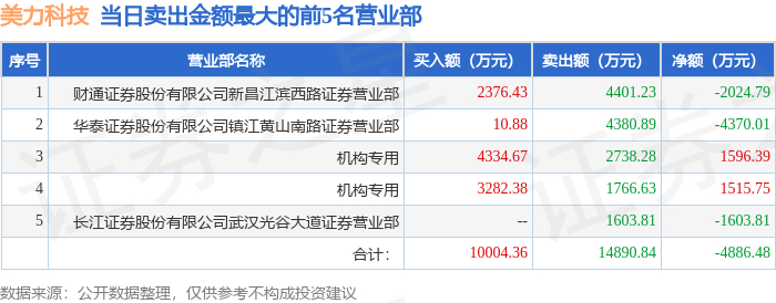10月15日美力科技(300611)龙虎榜数据:机构净买入6045.1万元