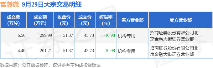 9月29日富瀚微现2笔折价10.98%的大宗交易 合计成交501.2万元