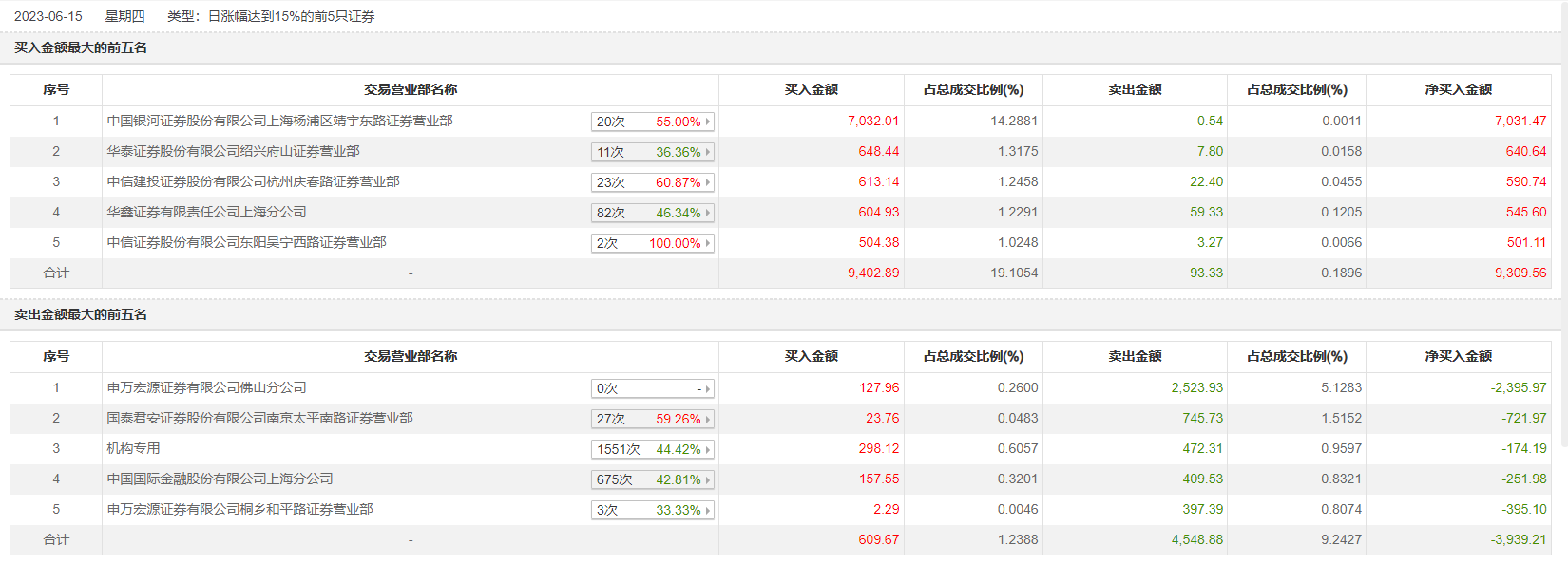 具体来看,机构买入298.12万元,卖出472.31万元,合计净卖出174.19万元。此外,知名游资现身龙虎榜,中国银河证券上海杨浦区靖宇东路证券营业部、华泰证券绍兴府山证券营业部分别买入7032.01万元、648.44万元;申万宏源证券有限公司佛山分公司、作手新一(国泰君安证券南京太平南路证券营业部)分别卖出2523.93万元、745.73万元。