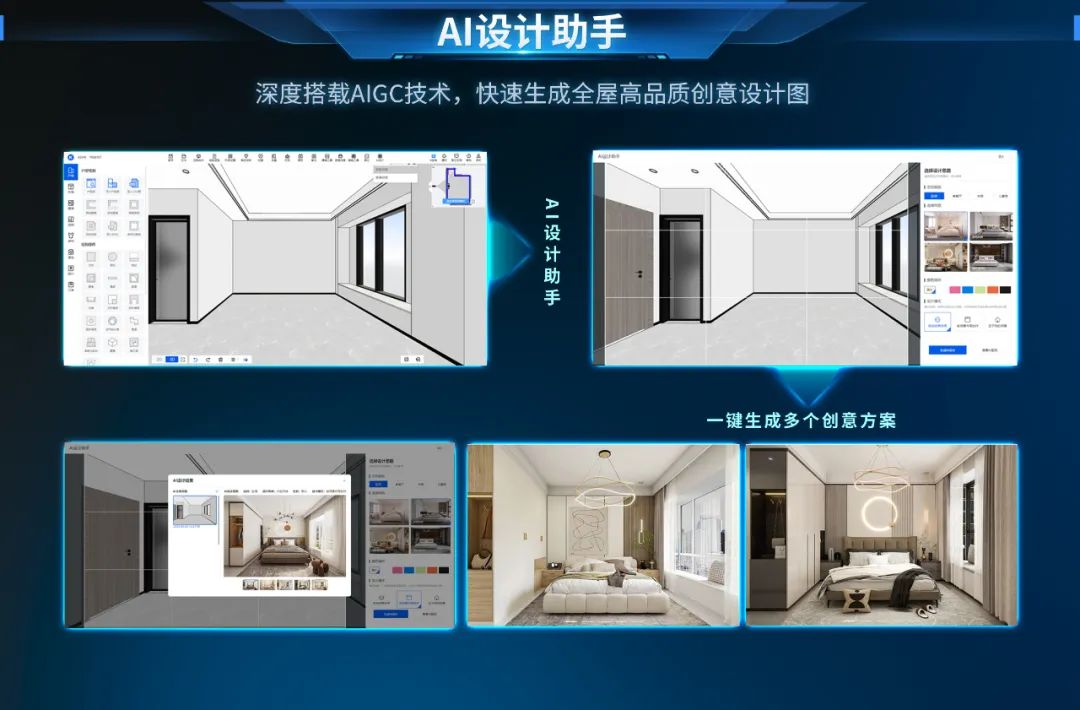 极大提升谈单效率:设计师在与客户初次见面阶段,基于AI设计助手输出的多个不同创意方案,能够迅速明确客户需求,与客户形成高效率沟通,极大提升设计师谈单成功率。