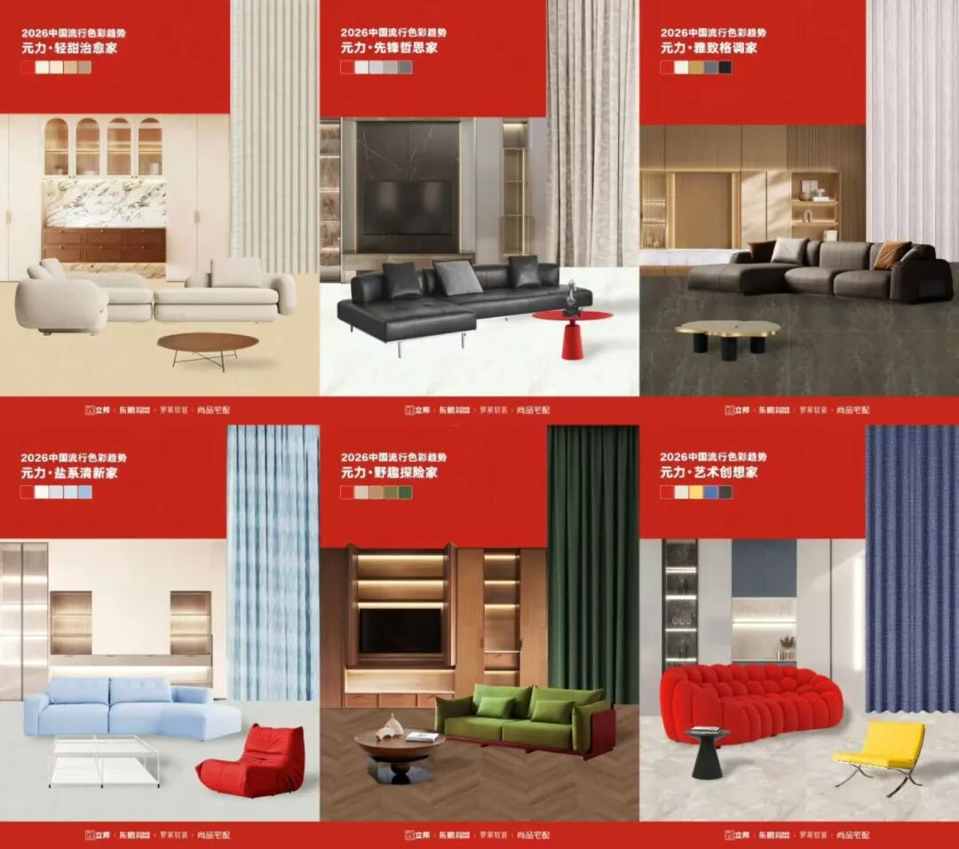 “轻甜治愈家·奶油色系”营造疗愈氛围,“野趣探险家·南洋色系”激发探索欲望,“先锋哲思家·烟灰色系”彰显前卫态度,“盐系清新家·北欧色系”勾勒自由灵魂,“艺术创想家·包豪斯色系”点亮缤纷创意,“雅致格调家·黑金色系”书写人文质感。一站式的解决方案,让专业的色彩趋势不再是遥不可及的效果图,而是可触摸、可购买的现实。