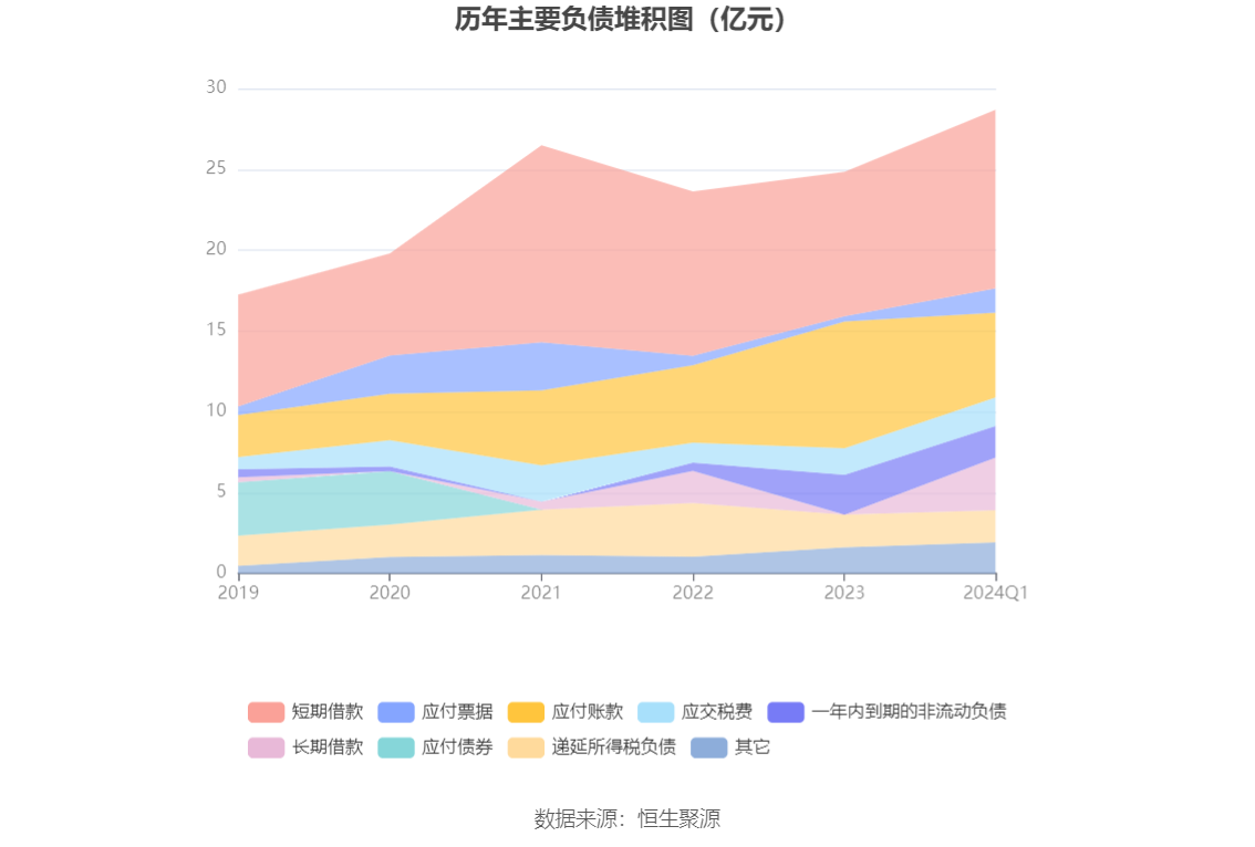 负债重大变化方面,截至2024年一季度末,公司应付账款较上年末减少33.23%,占公司总资产比重下降3.68个百分点;短期借款较上年末增加23.61%,占公司总资产比重上升1.99个百分点;应付票据较上年末增加367.63%,占公司总资产比重上升1.43个百分点;一年内到期的非流动负债较上年末减少20.90%,占公司总资产比重下降0.79个百分点。