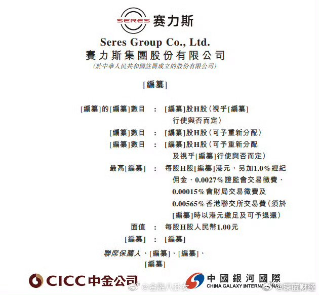 赛力斯集团通过港交所上市聆讯,联席保荐人为中金银河