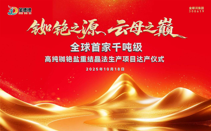 10月18日,金银河(300619.SZ)控股子公司江西金德锂新能源科技有限公司(以下简称“金德锂”)举行“全球首家千吨级高纯铷铯盐重结晶法生产项目达产仪式”,标志着我国在战略稀贵资源铷铯盐规模化生产领域取得重大突破。仪式现场,来自政府部门、行业协会、科研院所、产业链的嘉宾,共同见证这一里程碑时刻。
