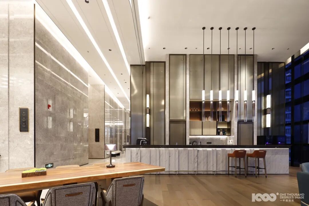 ▲首层大堂整体氛围庄重而洗练,于简洁中透射效率,作为办公楼的核心接待与形象枢纽,有力传递出企业的品牌格局与气质魅力。设计师统筹功能、材质、光影、色彩与细节质感,着力塑造国际化写字楼的品质形象。设计追求简洁明快的视觉秩序,强调空间的结构美与韵律感,最终营造出舒适、大气而富有质感的高端办公体验。