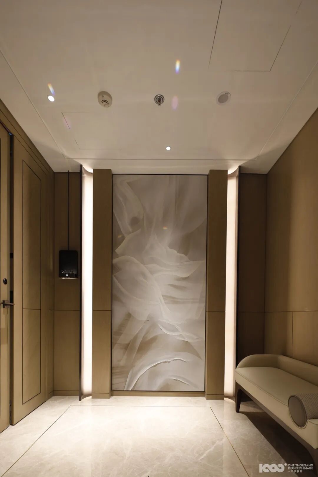 通过对海浪形态的艺术转译,空间本身化为一片静谧而有力的“海”,承载自然能量与静谧美学,也为每一位到访者搭建起与海洋、与内心对话的桥梁。在形态上,流线结构与建筑曲线温柔呼应海洋的节奏;在材质上,精选大理石、金属与玻璃,营造出清澈、温润而又富有现代感的触觉层次;在布局中,节奏性的艺术装置如潮汐般引导视线与步伐,形成富有呼吸感的动线体验。