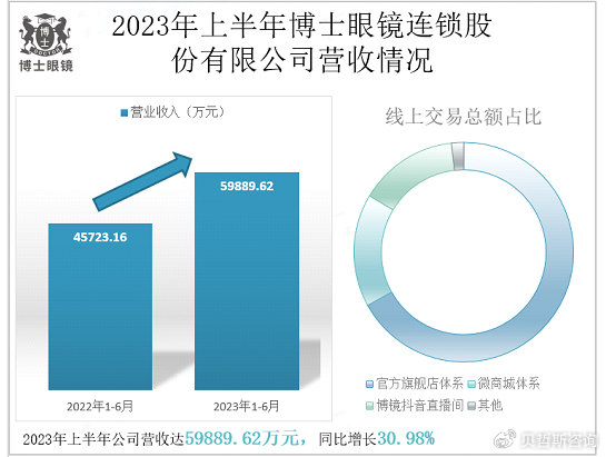 2023年上半年博士眼镜连锁股份有限公司营收同比增长30.98%