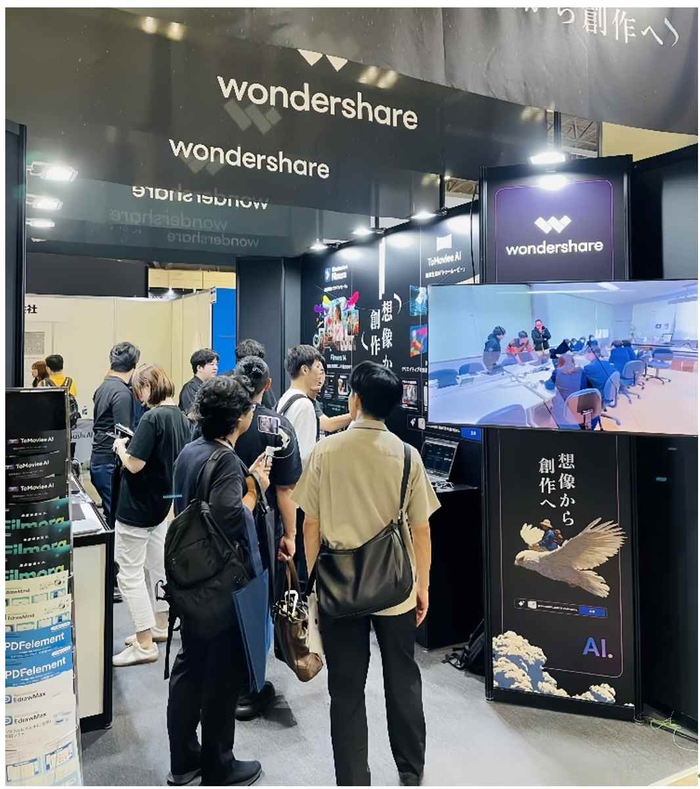 (万兴科技旗下ToMoviee AI已强势登陆日本市场)除ToMoviee AI外,万兴科技旗下视频、文档、绘图等数字创意产品矩阵及相关解决方案持续吸睛。其中,视频创意明星产品Wondershare Filmora、文档创意软件Wondershare PDFelement、思维导图软件Wondershare EdrawMind与图示创作软件Wondershare EdrawMax等产品惊艳亮相,吸引大量创作者现场体验。