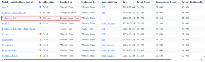 (万兴天幕2.0海外版ToMoviee 2.0 AI跻身VBench-2.0,综合得分全球前三)值得关注的是,Kling AI依托快手系的内容平台与流量营销生态,通过持续迭代玩法与体验,在平台闭环中快速兑现消费需求;万兴天幕AI作为第三方创意工具,面向以短视频创作者为代表的C端个人创作者,也面向B端企业用户。此外,万兴天幕AI产品还可与万兴科技旗下Wondershare Filmora、万兴喵影视频创意等产品形成强协同,其生成素材可通过万兴喵影等视频剪辑产品再创作,形成更具商业价值的视频成片。