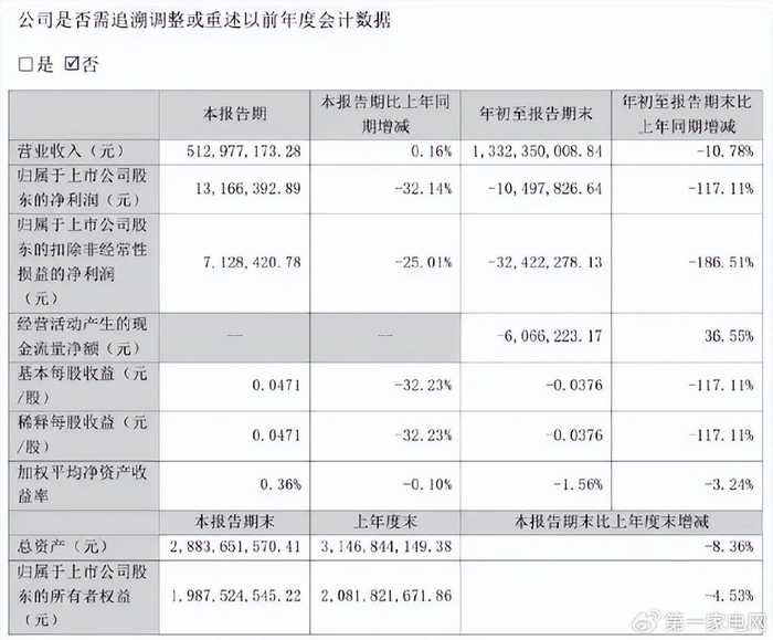 截至三季度末,公司总资产28.84亿元,较上年度末下降8.4%;归母净资产为19.88亿元,较上年度末下降4.5%。
