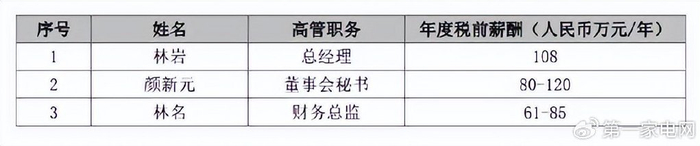 据悉,林岩在第六届总经理任期内的薪酬为人民币108万元/年(税前)。