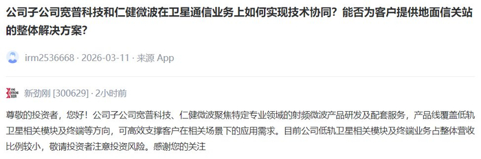 V观财报丨新劲刚:目前公司低轨卫星相关模块及终端业务占整体营收比例较小